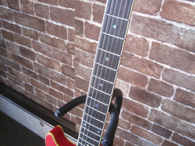 セミアコに見えますがセンターブロックなしのフルホロウ構造です(ブリッジアンカー用のブロックはあります)